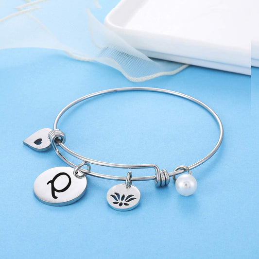 Letter Bracelet Initial Bracelet Heart Flower Charm Bracelets 26 Letters Bangle Bracelet for Women Girls Personalized Jewelry