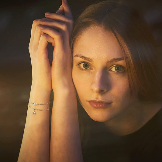 Gold Bracelets for Women, 14K Real Gold Plated Bracelets for Women Dainty Evil Eye Bracelets for Teen Girls Adjustable Box Chain Layered Trendy Gold Initial Handmade Charm Bracelets for Teen Girls