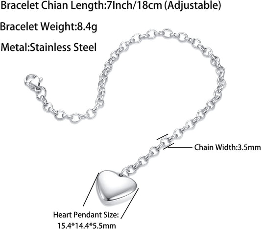 Women Girls a to Z Initial Letter Charm Bracelets Stainless Steel Alphabet Heart 26 Letters Link Bracelet for Boys Mens Birthday Gifts