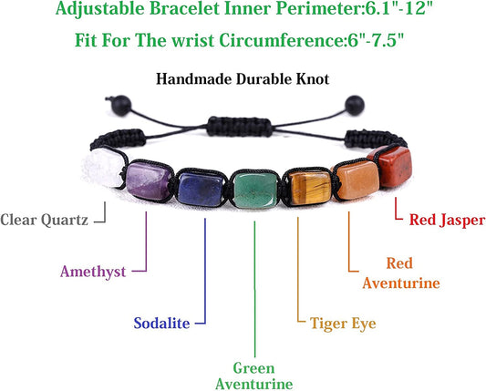 Genuine 7 Chakra Adjustable Bracelets for Women Men,Crystal Healing Stones Bracelets,Supernatural Reiki Stones Bead Bracelets,Natural Stone Braided Bracelets
