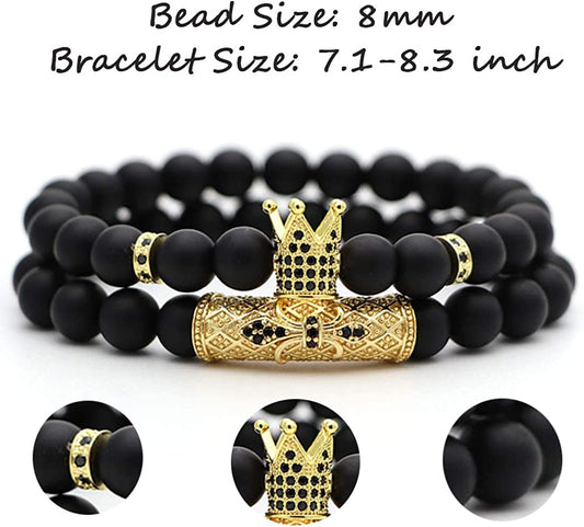 CARSHIER 4 PCS Bracelets for Men Women Friendship Lava Stone Crown Bead Bracelets 8MM Natural Essential Oil Diffuser Beads Bangles Gifts